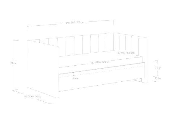 | Размер спального места, см | 120х200 / 90х200 / 90х180 / 80х200 / 80х190 / 80х180 |