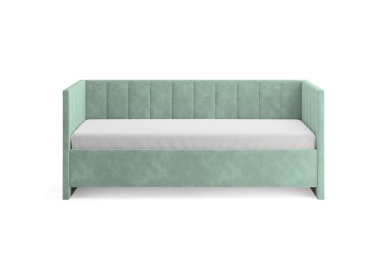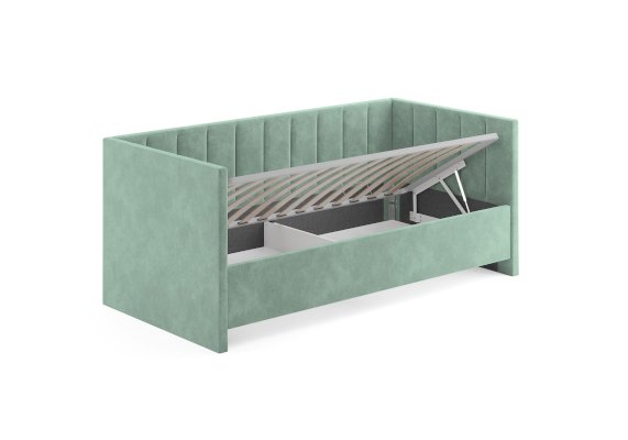 Чехол на матрас в материале кровати, обивка задней части спинки, бортик для кровати и подъемный механизм с бельевым ящиком приобретается отдельно