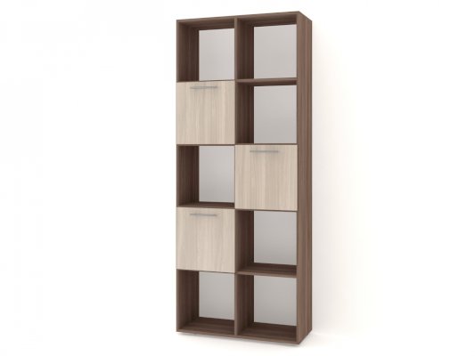 Применение задней стенки из ЛДСП (в ячейках с фасадами) позволяет использовать данный стеллаж для зонирования пространства (чтобы предотвратить опрокидывание, необходимо обеспечить крепление стеллажа к стене).