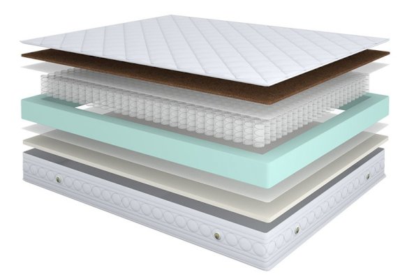 Наполнитель: Высокоэластичная пена ElasticFoam, кокосовая койра, НПБ 256 шт/кв.м., система усиления боковой поддержки, ППУ