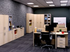 Закрытый  шкаф для документов. За дверцами спрятаны вместительные полки.