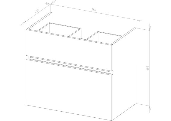 • 2 выдвижных ящика со встроенным доводчиком плавного закрывания, скрытого монтажа;
