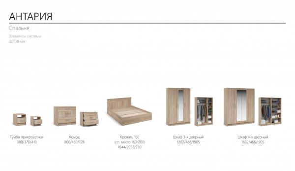 Модульная спальня Антария Дуб Сонома (Империал)