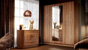 Спальня Антария – это дух творчества и самобытного стиля. Нестандартные фасады ЛДСП с асимметричными скошенными линиями вносят свободу и движение в жилое пространство, делают интерьер более сложным и необычным, придают характер и индивидуальность. Декор фасадов повторяет цвет и рисунок натурального дерева. Оптимальный набор модулей поможет вам создать яркий и функциональный интерьер, отражающий ваши вкусы и предпочтения.