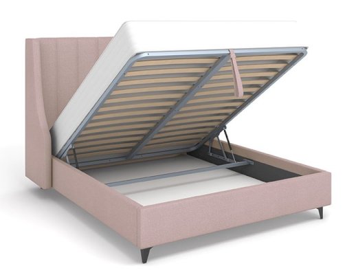 Крепление царги и спинки каркаса стыкуется на соединительных уголках. В основании кровати: металлическая горизонтальная траверса (металл) на болтах и планка торсионная продольная (нижняя под бельевым ящиком) на болтах + доп. опора. Такой способ соединения элементов кровати дает возможность многократной сборки-разборки. Металлические элементы конструктива кровати позволяют стабилизировать геометрию конструкции.