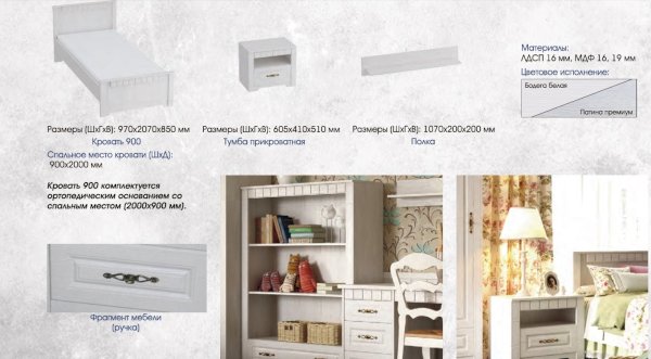Модульная спальня детская Прованс (МБГ) - за 37 581 руб. в Макеевке. Купите на сайте makeevka.onlinemarketmebeli.ru или по телефону 8(800)505-30-63 уже сегодня! Уточнить наличие, комплектацию, актуальную цену можно бесплатно у менеджера ежедневно. Закажите Модульная спальня детская Прованс (МБГ) до конца акции! Доступна покупка в кредит, рассрочку. Доставим со склада или на заказ.
