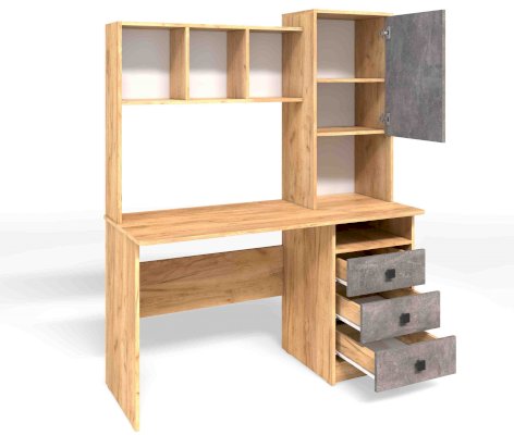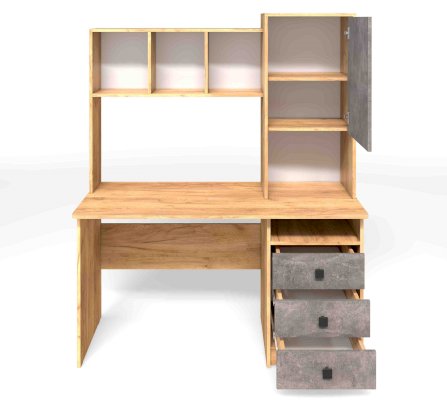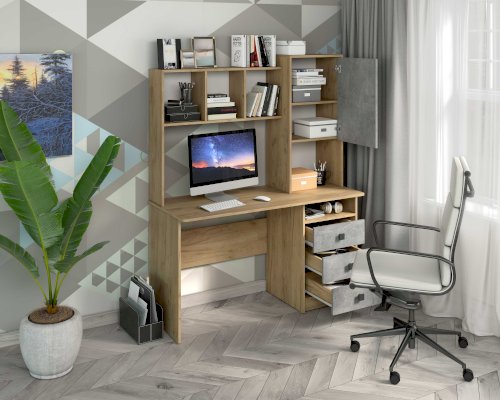 Компьютерный стол СК-9 отличается большой рабочей поверхностью, есть две ниши под дополнительное оборудование, три вместительных ящика, просторные открытые полки над столом для бумаг, книг и всегда нужных мелочей, и закрытые полки для документов. С таким столом вы приобретете удобное рабочее место, практически миниофис со всем необходимым.